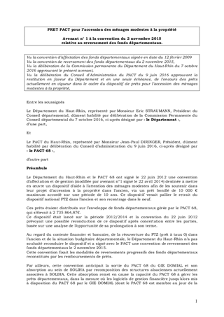 PRET PACT POUR L'ACCESSION DES MÉNAGES MODESTES À LA PROPRIÉTÉ AVENANT N 1 À LA CONVENTION DE REVERSEMENT DES FONDS DÉPARTEMENTAUX