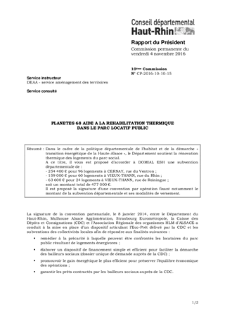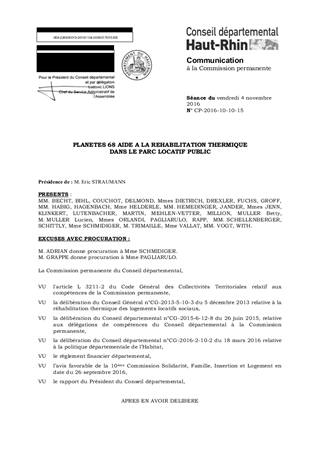 PLANETES 68 AIDE A LA REHABILITATION THERMIQUEDANS LE PARC LOCATIF PUBLIC