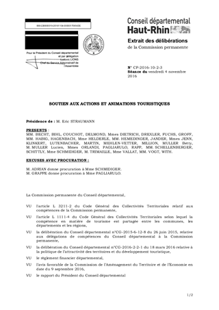 Dans le cadre de la politique départementale de soutien aux actions et animations touristiques, il est proposé d'attribuer une subvention de 10 800 € à la Ville d'ALTKIRCH pour la manifestation la "Forêt Enchantée" au titre de 2016. Ce rapport a fait l'objet d'un avis favorable de la Commission de l'Aménagement du Territoire et de l'Economie lors de la réunion du 9 septembre 2016.