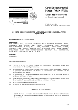SOCIETE D'ECONOMIE MIXTE LOCALE MAISON DE L'ALSACE A PARIS LIQUIDATION