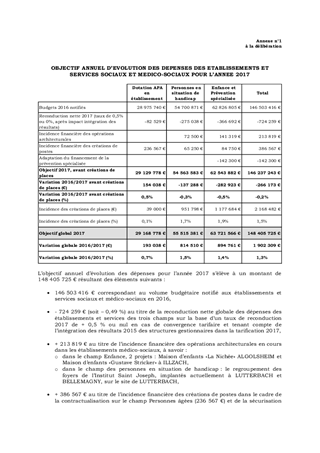 OBJECTIF ANNUEL D'EVOLUTION DES DEPENSES DES ETABLISSEMENTS ET SERVICES SOCIAUX ET MEDICO-SOCIAUX POUR L'ANNEE 2017