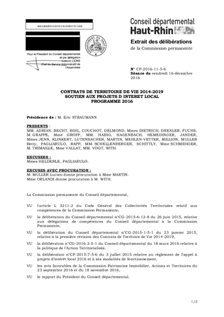 CONTRATS DE TERRITOIRE DE VIE 2014-2019SOUTIEN AUX PROJETS D INTERET LOCALPROGRAMME 2016