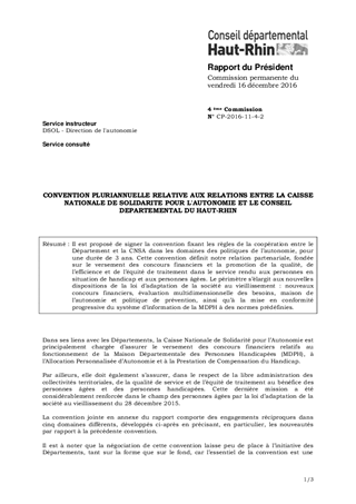 CONVENTION PLURIANNUELLE RELATIVE AUX RELATIONS ENTRE LA CAISSE NATIONALE DE SOLIDARITE POUR L'AUTONOMIE ET LE CONSEIL DEPARTEMENTAL DU HAUT-RHIN