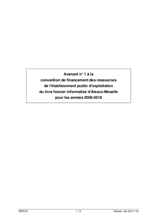 AVENANT A LA CONVENTION DE FINANCEMENT DE L'ÉTABLISSEMENT PUBLIC D'EXPLOITATION DU LIVRE FONCIER INFORMATISÉ D'ALSACE-MOSELLE POUR LES ANNÉES 2009-2018
