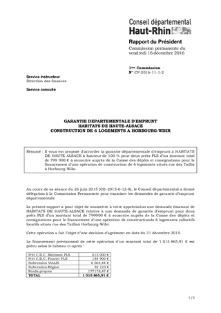 GARANTIE DEPARTEMENTALE D'EMPRUNTHABITATS DE HAUTE-ALSACE CONSTRUCTION DE 6 LOGEMENTS A HORBOURG-WIHR