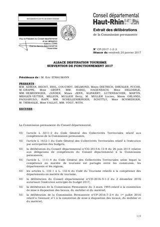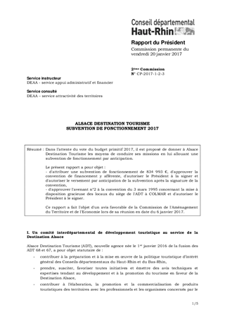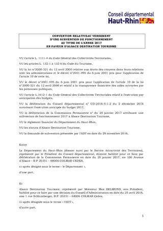 ALSACE DESTINATION TOURISME SUBVENTION DE FONCTIONNEMENT 2017