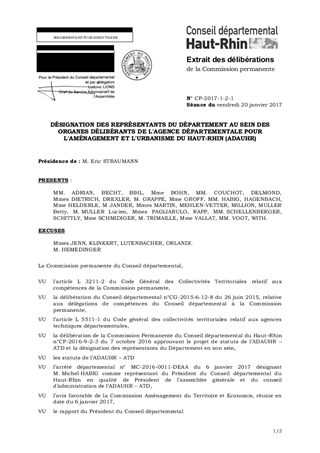 DÉSIGNATION DES REPRÉSENTANTS DU DÉPARTEMENT AU SEIN DES ORGANES DÉLIBÉRANTS DE L'AGENCE DÉPARTEMENTALE POUR L'AMÉNAGEMENT ET L'URBANISME DU HAUT-RHIN (ADAUHR)