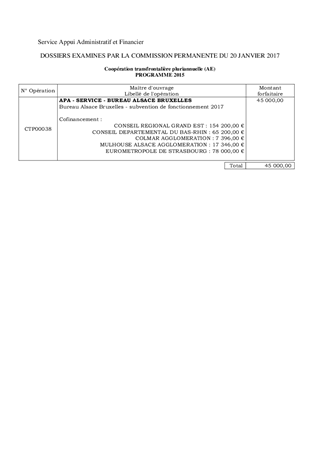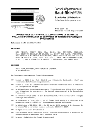 CONTRIBUTION 2017 AU BUREAU ALSACE EUROPE DE BRUXELLES ORGANISME D'INFORMATION ET DE CONSEIL EN MATIÈRE DE POLITIQUES EUROPÉENNES