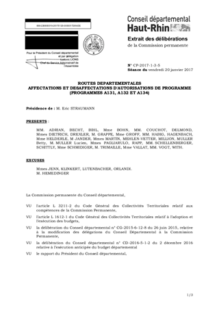 ROUTES DEPARTEMENTALESAFFECTATIONS ET DESAFFECTATIONS D'AUTORISATIONS DE PROGRAMME(PROGRAMMES A131, A132 ET A134)