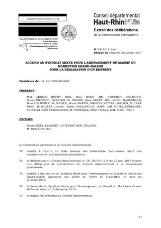 ACCORD AU SYNDICAT MIXTE POUR L'AMENAGEMENT DU MASSIF DU MARKSTEIN GRAND-BALLONPOUR LA REALISATION D'UN EMPRUNT