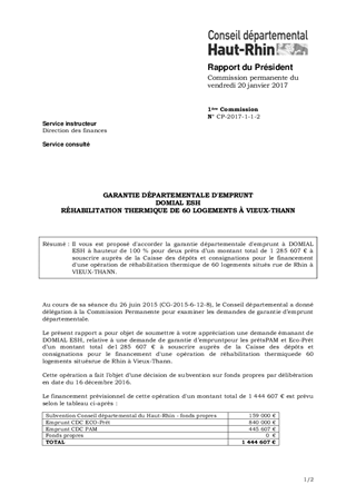 GARANTIE DÉPARTEMENTALE D'EMPRUNTDOMIAL ESHRÉHABILITATION THERMIQUE DE 60 LOGEMENTS À VIEUX-THANN