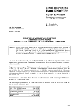 GARANTIE DEPARTEMENTALE D'EMPRUNTHABITATS DE HAUTE-ALSACE REHABILITATION THERMIQUE DE 88 LOGEMENTS A GUEBWILLER