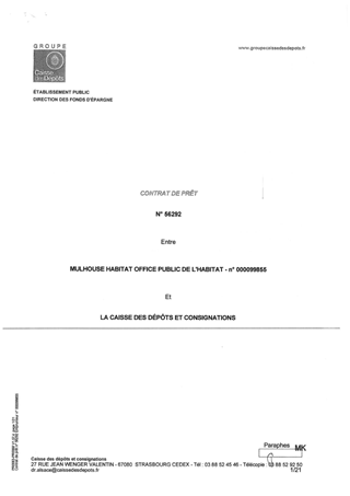 Il vous est proposé d'accorder la garantie départementale d'emprunt à MULHOUSE HABITAT à hauteur de 100 % pour un prêt d’un montant total de 896 400 € constitué de deux lignes du prêt selon l'affectation suivante : - PLAI d'un montant de 620 800 €, - PLAI Foncier d'un montant de 275 600 €, à souscrire auprès de la Caisse des dépôts et consignations pour le financement d'une opération de construction de 6 logements locatifs sociaux situés 34 rue d’Illfurth à HEIDWILLER.