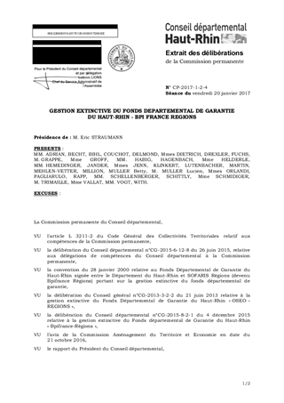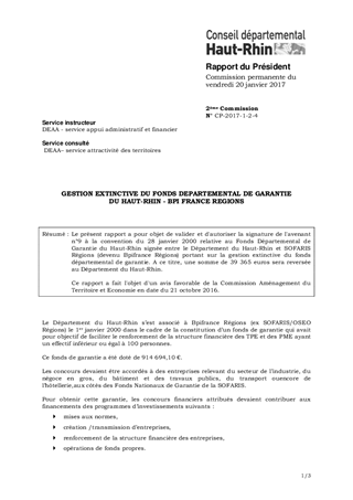 GESTION EXTINCTIVE DU FONDS DEPARTEMENTAL DE GARANTIE DU HAUT-RHIN - BPI FRANCE REGIONS