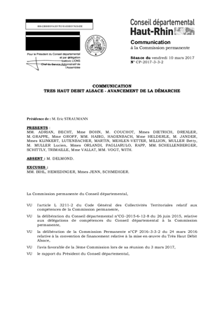 COMMUNICATIONTRES HAUT DEBIT ALSACE - AVANCEMENT DE LA DÉMARCHE