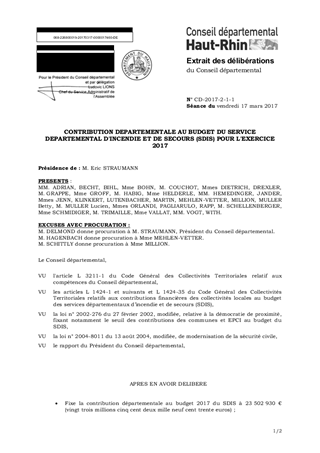 CONTRIBUTION DEPARTEMENTALE AU BUDGET DU SERVICE DEPARTEMENTAL D'INCENDIE ET DE SECOURS (SDIS) POUR L'EXERCICE 2017