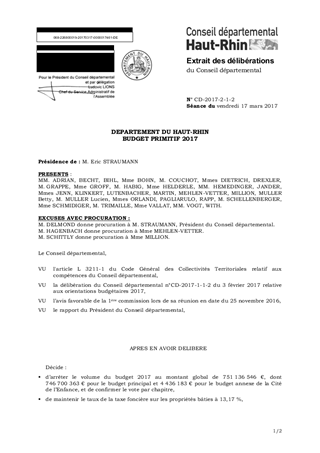 DEPARTEMENT DU HAUT-RHINBUDGET PRIMITIF 2017
