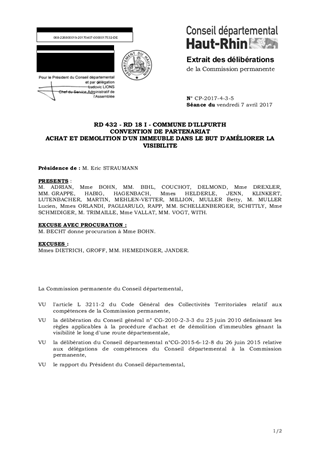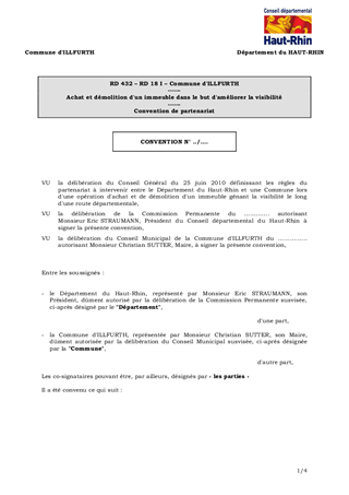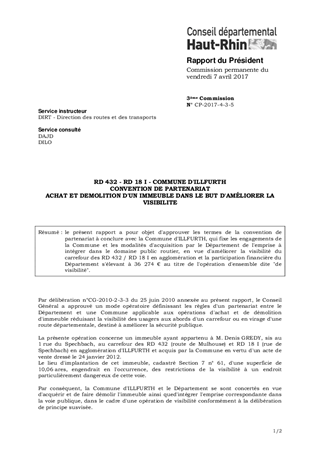 RD 432 - RD 18 I - COMMUNE D'ILLFURTHCONVENTION DE PARTENARIATACHAT ET DEMOLITION D'UN IMMEUBLE DANS LE BUT D'AMÉLIORER LA VISIBILITE