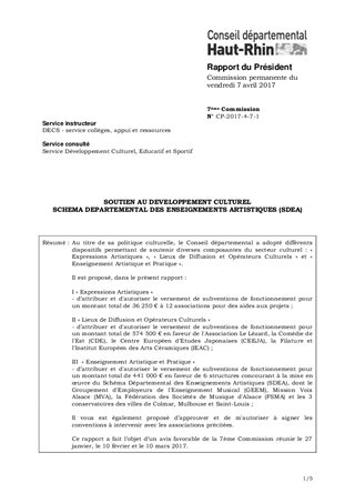 SOUTIEN AU DEVELOPPEMENT CULTURELSCHEMA DEPARTEMENTAL DES ENSEIGNEMENTS ARTISTIQUES (SDEA)