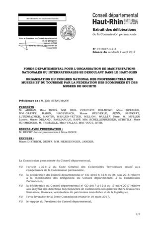FONDS DEPARTEMENTAL POUR L'ORGANISATION DE MANIFESTATIONS NATIONALES OU INTERNATIONALES SE DEROULANT DANS LE HAUT-RHINORGANISATION DU CONGRES NATIONAL DES PROFESSIONNELS DES MUSEES ET DU TOURISME PAR LA FEDERATION DES ECOMUSEES ET DES MUSEES DE SOCIETE