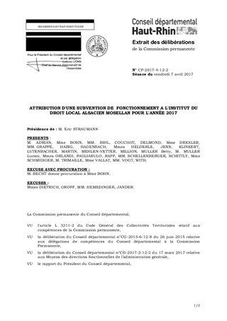 ATTRIBUTION D'UNE SUBVENTION DE FONCTIONNEMENT A L'INSTITUT DU DROIT LOCAL ALSACIEN MOSELLAN POUR L'ANNÉE 2017