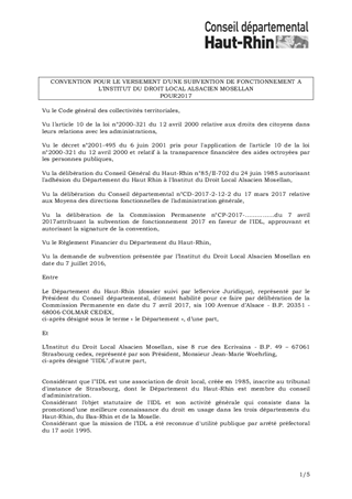 Le présent rapport a pour objet d'attribuer une subvention de fonctionnement de 50 000 euros à l'Institut du Droit Local Alsacien Mosellan, d'approuver et d'autoriser le Président du Conseil départemental à signer la convention y afférente.