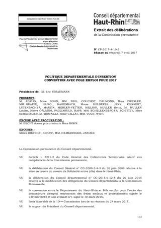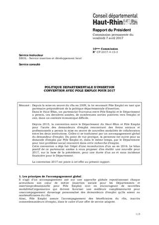 POLITIQUE DEPARTEMENTALE D'INSERTIONCONVENTION AVEC POLE EMPLOI POUR 2017