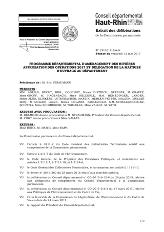 PROGRAMME DÉPARTEMENTAL D'AMÉNAGEMENT DES RIVIÈRESAPPROBATION DES OPÉRATIONS 2017 ET DÉLÉGATION DE LA MAÎTRISE D'OUVRAGE AU DÉPARTEMENT