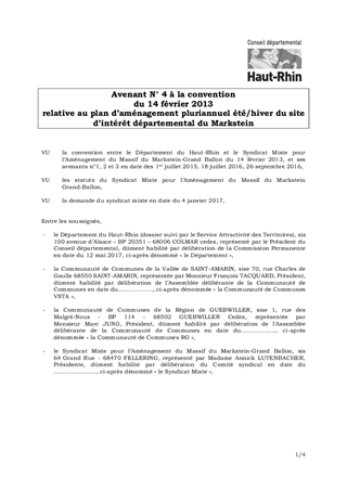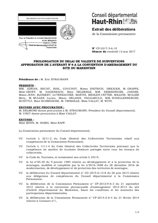 PROLONGATION DU DELAI DE VALIDITE DE SUBVENTIONS APPROBATION DE L'AVENANT N°4 A LA CONVENTION D'AMENAGEMENT DU SITE DU MARKSTEIN