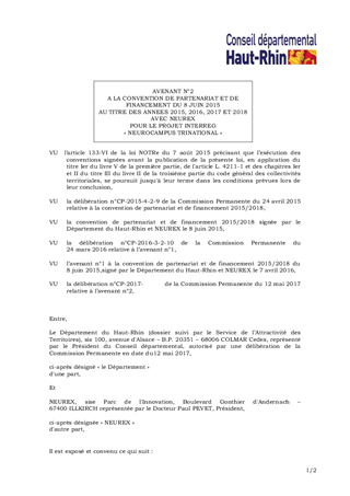 NEUREXPROJET INTERREG NEUROCAMPUS TRINATIONALAVENANT N°2