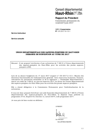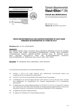 UNION DEPARTEMENTALE DES SAPEURS-POMPIERS DU HAUT-RHIN DEMANDE DE SUBVENTION AU TITRE DE 2017