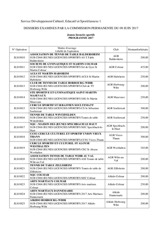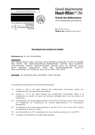Il vous est proposé de voter l'individualisation des aides prévues au BP 2017 et d’allouer les diverses aides financières suivantes : - 133 425 € de soutien aux 386 clubs sportifs pour les « Jeunes licenciés sportifs », - 51 204 € pour leur fonctionnement de 28 Comités départementaux, - 3 500 € pour l’organisation d’un Mercredi Sportif de Judo par l’ACS Peugeot, - 5 000 € pour l’organisation du Village de Nature par le CROSA, - 1 000 € pour l’organisation du championnat de France de recherche utilitaire par l’Entente Cynophile de la vallée de MUNSTER. Le total de l'enveloppe à engager dans ce rapport s'élève à 194 129 € en dépenses de fonctionnement.