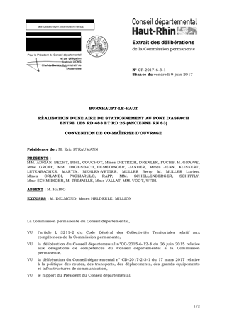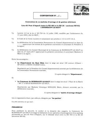 BURNHAUPT-LE-HAUTRÉALISATION D'UNE AIRE DE STATIONNEMENT AU PONT D'ASPACHENTRE LES RD 483 ET RD 26 (ANCIENNE RN 83)CONVENTION DE CO-MAÎTRISE D'OUVRAGE