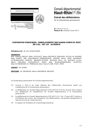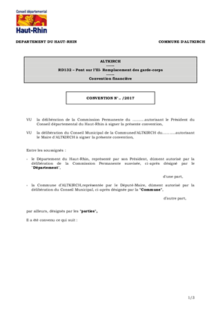 CONVENTION FINANCIERE - REMPLACEMENT DES GARDE-CORPS DU PONT DE L'ILL - RD 132 - ALTKIRCH