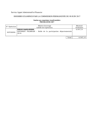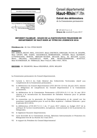 INFOBEST PALMRAIN - SOLDE DE LA PARTICIPATION FINANCIERE DU DEPARTEMENT DU HAUT-RHIN AU TITRE DE L'EXERCICE 2016
