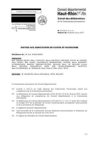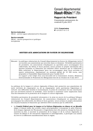 La politique volontariste du Conseil départemental en faveur du bilinguisme inclut un soutien aux associations qui œuvrent dans ce domaine. Véritables partenaires de proximité, ces associations s’impliquent au quotidien pour accompagner les collectivités, les élèves et leurs parents. Leurs actions et projets nécessitent des moyens humains et financiers qui méritent d’être soutenus par la collectivité. Elles sollicitent le Département pour les accompagner dans leurs activités et quatre subventions, représentant un montant global de 18 500 euros, sont proposées à l’Assemblée départementale pour l’année 2017. Ce rapport a fait l’objet d’un avis favorable de la Commission Actions, Relations Internationales et Promotion du Bilinguisme lors de sa réunion du 5 mai 2017.