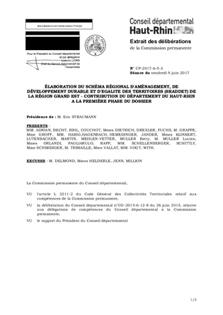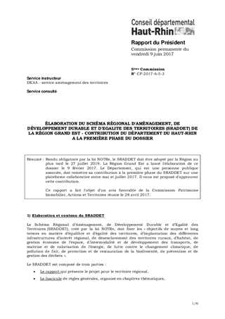 ÉLABORATION DU SCHÉMA RÉGIONAL D'AMÉNAGEMENT, DE DÉVELOPPEMENT DURABLE ET D'EGALITE DES TERRITOIRES (SRADDET) DE LA RÉGION GRAND EST - CONTRIBUTION DU DÉPARTEMENT DU HAUT-RHIN A LA PREMIÈRE PHASE DU DOSSIER