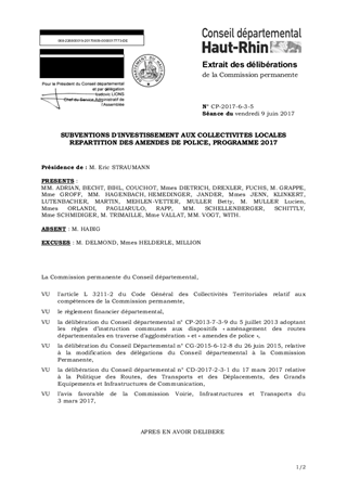SUBVENTIONS D'INVESTISSEMENT AUX COLLECTIVITES LOCALES REPARTITION DES AMENDES DE POLICE, PROGRAMME 2017