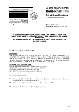REAMENAGEMENT DE L'ITINERAIRE ROUTIER EMPRUNTE PAR LES TRANSPORTS EXCEPTIONNELS ENTRE LA VILLE DE BELFORT ET LE PORT AUTONOME DE STRASBOURG POUR LA LIVRAISON DES PIECES INDUSTRIELLES DE 500 TONNES