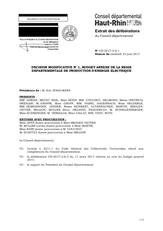 DECISION MODIFICATIVE N° 1, BUDGET ANNEXE DE LA REGIE DEPARTEMENTALE DE PRODUCTION D'ENERGIE ELECTRIQUE