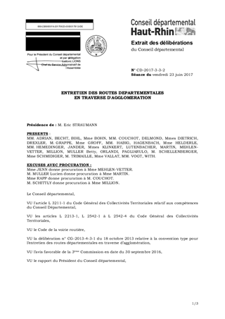 ENTRETIEN DES ROUTES DEPARTEMENTALES EN TRAVERSE D'AGGLOMERATION