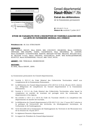 ETUDE DE FAISABILITE POUR L'INSCRIPTION DU VIGNOBLE ALSACIEN SUR LA LISTE DU PATRIMOINE MONDIAL DE L'UNESCO