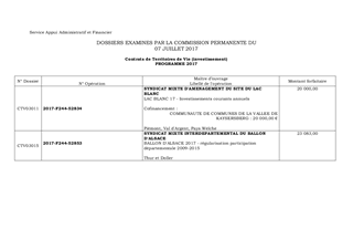 Le présent rapport a pour objet : - d'attribuer un montant total de 54 400 € au titre des investissements courants annuels en faveur des syndicats mixtes d'aménagement des stations de montagne du Lac Blanc, de la Vallée de Munster, du Markstein-Grand Ballon et du Ballon d'Alsace (SMIBA), - d'attribuer une subvention de 23 083 € pour régulariser la participation départementale en faveur du SMIBA sur la période 2009-2015. Ce rapport a fait l'objet d'un avis favorable de la Commission de l'Agriculture, de l'Environnement et du Cadre de Vie lors de la réunion du 5 mai 2017.