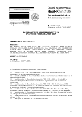 FONDS CANTONAL D'INVESTISSEMENT (FCI)QUATRIEME PROGRAMMATION 2017