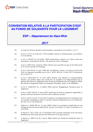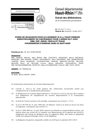 FONDS DE SOLIDARITE POUR LE LOGEMENT (F.S.L.) VOLET ENERGIE RENOUVELLEMENT DU PARTENARIAT POUR L'ANNEE 2017 AVEC EBM, EDF, ENGIE, VEOLIA ET VIALIS FOURNISSEURS D'ENERGIE DANS LE HAUT-RHIN