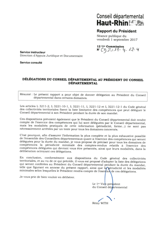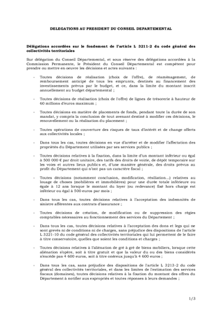 DÉLÉGATIONS DU CONSEIL DÉPARTEMENTAL AU PRÉSIDENT DU CONSEIL DÉPARTEMENTAL