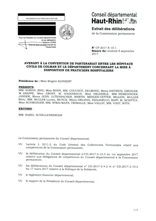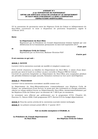 AVENANT À LA CONVENTION DE PARTENARIAT ENTRE LES HÔPITAUX CIVILS DE COLMAR ET LE DÉPARTEMENT CONCERNANT LA MISE À DISPOSITION DE PRATICIENS HOSPITALIERS