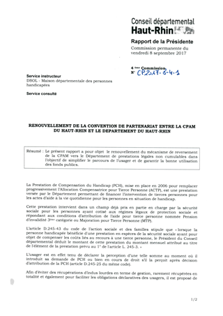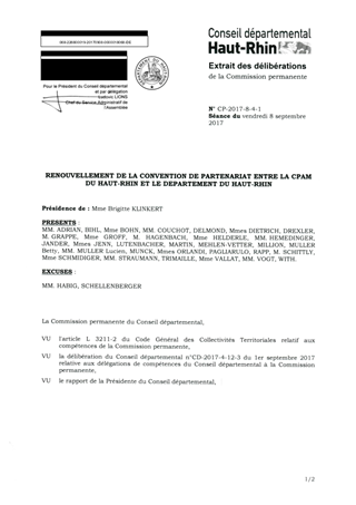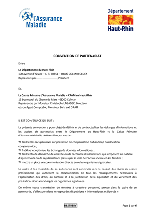 RENOUVELLEMENT DE LA CONVENTION DE PARTENARIAT ENTRE LA CPAM DU HAUT-RHIN ET LE DEPARTEMENT DU HAUT-RHIN