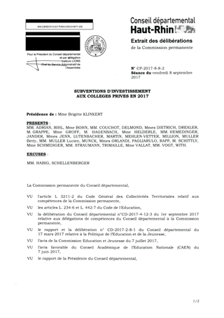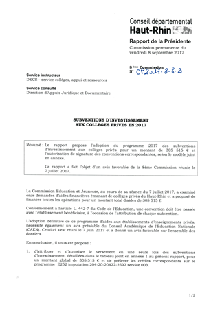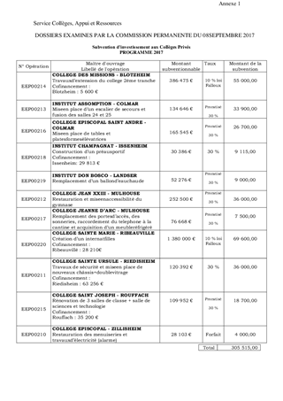 SUBVENTIONS D'INVESTISSEMENTAUX COLLEGES PRIVES EN 2017
