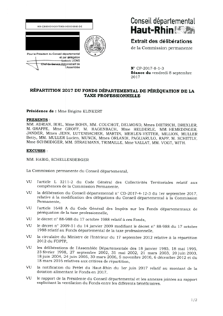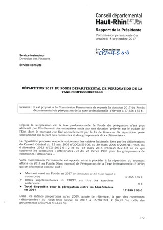 RÉPARTITION 2017 DU FONDS DÉPARTEMENTAL DE PÉRÉQUATION DE LA TAXE PROFESSIONNELLE